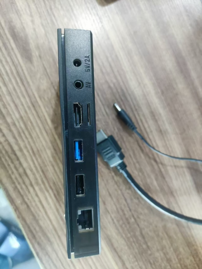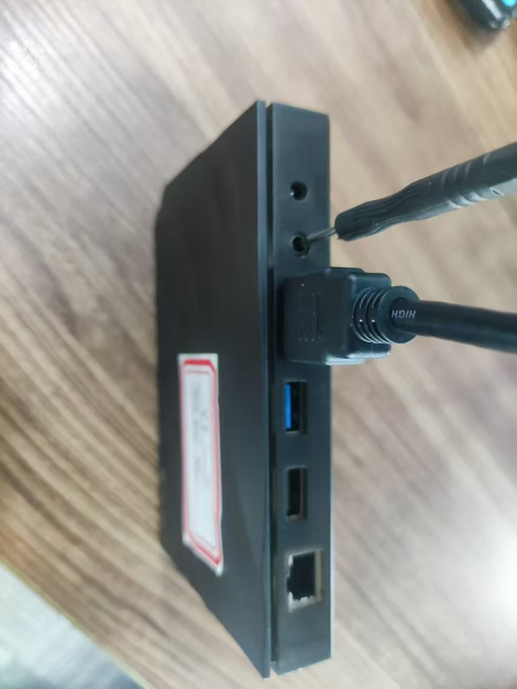 1、First, connect the HDMI cable and use the pin to press and hold the reset button on the AV interface.